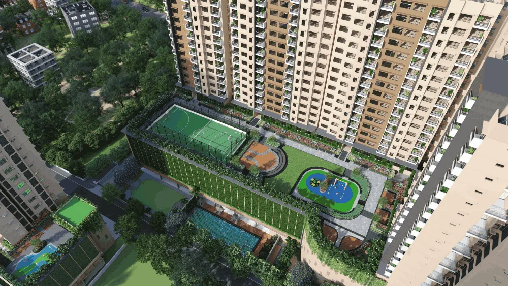 As part of premium Mahindra Lifespaces projects, this development stands out for its IGBC Gold certification, net-zero energy approach, and ~2 acres of wellness-focused amenities including a clubhouse, half Olympic-size pool, gym, and yoga zone.